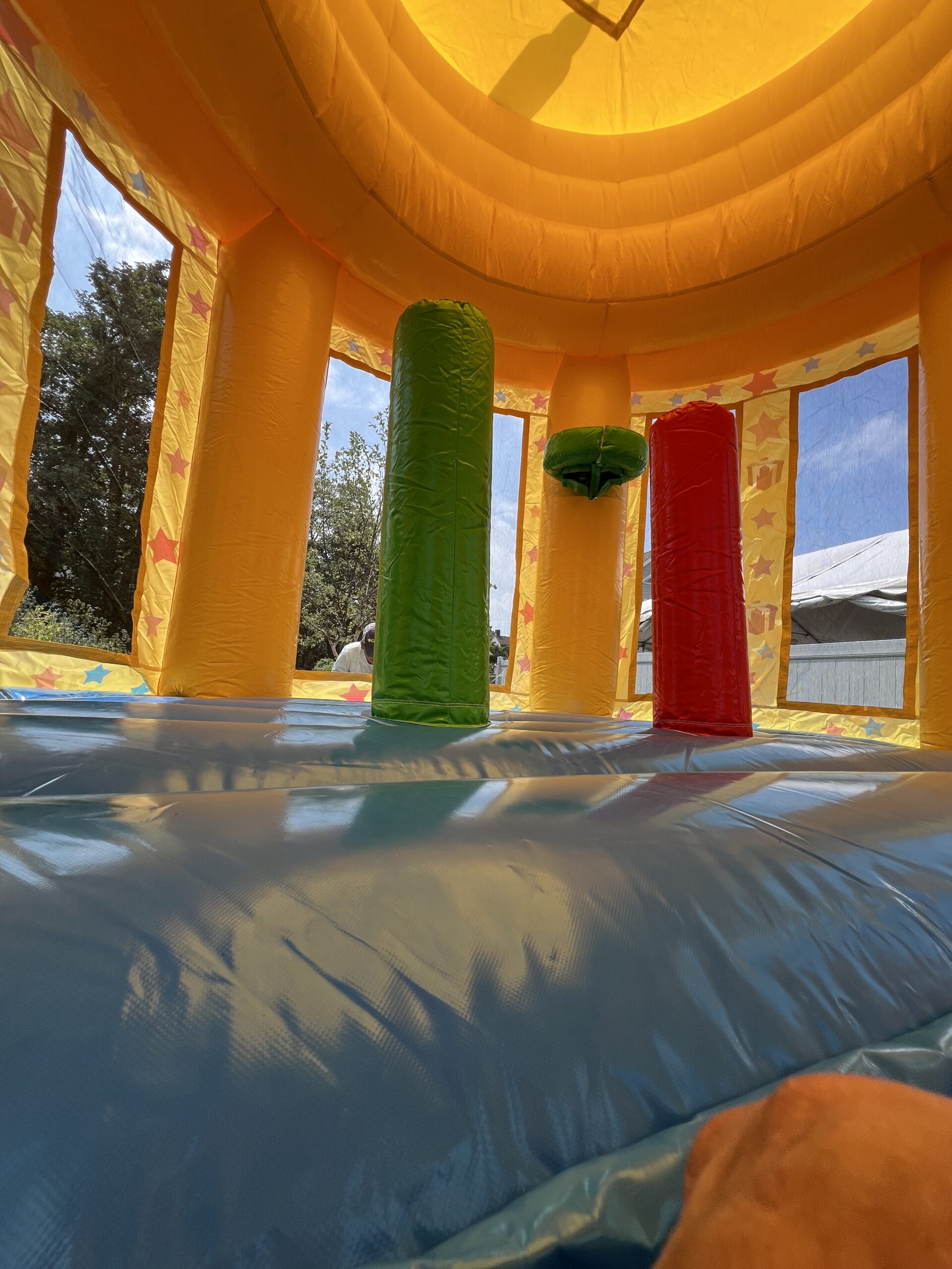 At 15 feet wide, the bounce House offers a spacious jumping area where kids can laugh, play, and burn off energy. Its circular shape allows for continuous movement and easy flow inside the bounce house. Because of its compact footprint relative to the excitement it delivers, it fits well in most backyards, driveways, or community spaces.
