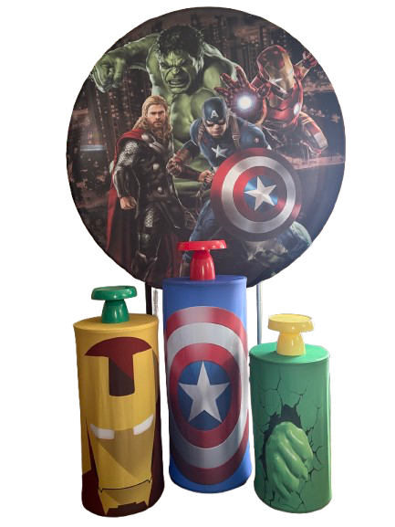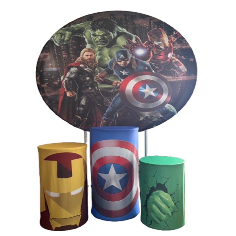 Our superhero backdrop create an exciting and immersive atmosphere for themed celebrations. This complete display includes a bold circular backdrop and coordinated pedestal stands that instantly transform any venue. Whether you are hosting a birthday at home or planning a larger event, this setup delivers strong visual impact from the moment guests arrive.